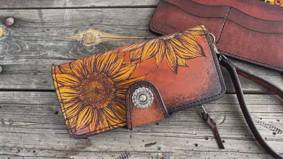 The large clutch wallet is handmade from natural vegetable tanned leather which is then hand dyed in a rich brown and antiqued for a beautiful, rustic finish.
